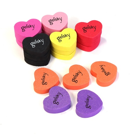 Gelsky Làm Móng Tay Công Cụ 100/180 Grit Hình Trái Tim Móng Tay Bộ Đệm Đầy Màu Sắc Trái Tim Nhỏ Móng Tay Bộ Đệm
